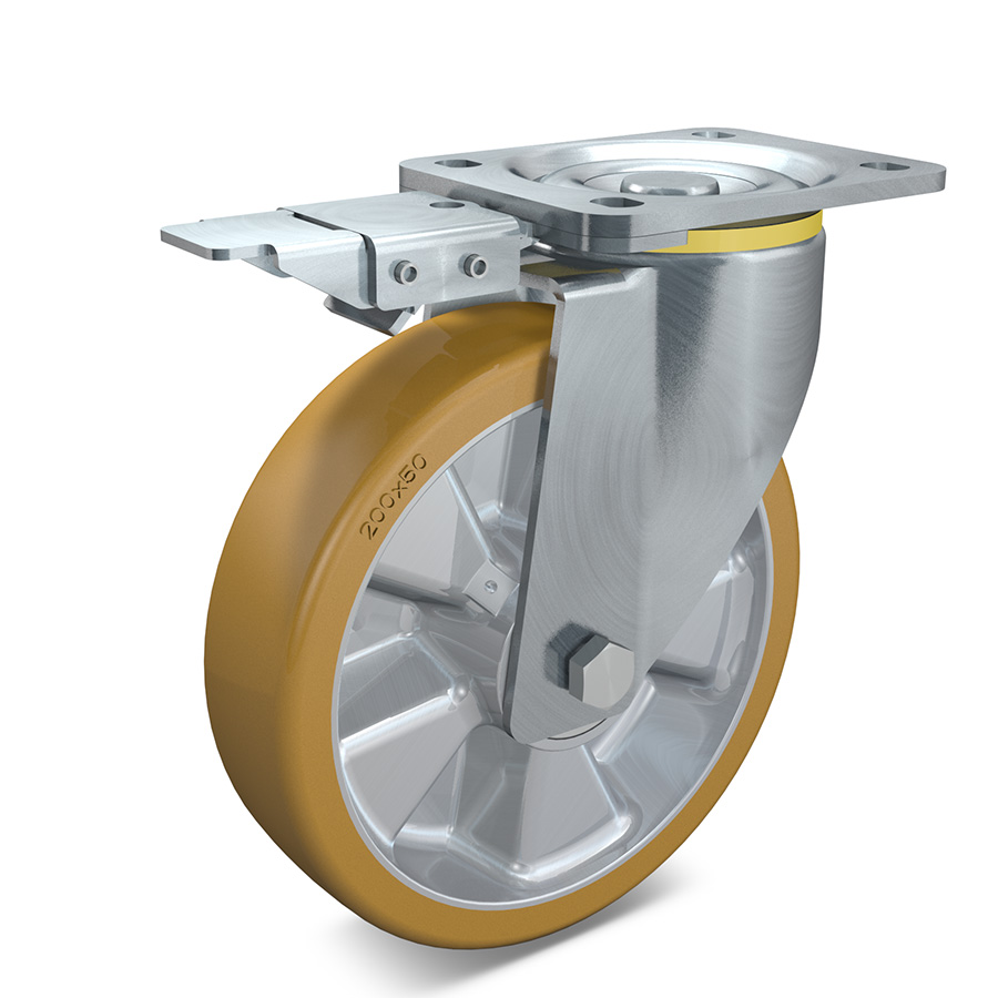 Zur letzten Seite Zur Übersicht Schwerlastrollen Schwerlastrollen Bockrollemit Anschraubplatte 300 - 800kg Durchmesser 100 - 250mm Gehäuse aus verstärktem Stahlblech Polyurethanrad, Präzisionskugellager TabgruppeTechn. Daten Bestellcodemmkgmmmmmmmm 40B TIP 100 P0610030040 105 x 8580 x 60110 Bestellcode : 40B TIP 100 P06Rad ø in mm : 100Tragkraft in kg : 300Radbreite in mm : 40Plattengröße in mm : 105 x 85Schraubloch Abstand in mm : 80 x 60Schraubloch ø in mm : 9,00Bauhöhe in mm : 110Temperaturbereich C° min / max : -20° / +60°Norm : EN 12532EAN-Code : 4250217331008 40B TIP 125 P0712550054 140 x 110105 x 80 / 75165 Bestellcode : 40B TIP 125 P07Rad ø in mm : 125Tragkraft in kg : 500Radbreite in mm : 54Plattengröße in mm : 140 x 110Schraubloch Abstand in mm : 105 x 80 / 75Schraubloch ø in mm : 11,00Bauhöhe in mm : 165Temperaturbereich C° min / max : -20° / +60°Norm : EN 12532EAN-Code : 4250217331015 40B TIP 160 P0716060050 140 x 110105 x 80 / 75200 Bestellcode : 40B TIP 160 P07Rad ø in mm : 160Tragkraft in kg : 600Radbreite in mm : 50Plattengröße in mm : 140 x 110Schraubloch Abstand in mm : 105 x 80 / 75Schraubloch ø in mm : 11,00Bauhöhe in mm : 200Temperaturbereich C° min / max : -20° / +60°Norm : EN 12532EAN-Code : 4250217331022 40B TIP 200 P0720080050 140 x 110105 x 80 / 75240 Bestellcode : 40B TIP 200 P07Rad ø in mm : 200Tragkraft in kg : 800Radbreite in mm : 50Plattengröße in mm : 140 x 110Schraubloch Abstand in mm : 105 x 80 / 75Schraubloch ø in mm : 11,00Bauhöhe in mm : 240Temperaturbereich C° min / max : -20° / +60°Norm : EN 12532EAN-Code : 4250217331039 40B TIP 250 P0725080050 140 x 110105 x 80 / 75292 Bestellcode : 40B TIP 250 P07Rad ø in mm : 250Tragkraft in kg : 800Radbreite in mm : 50Plattengröße in mm : 140 x 110Schraubloch Abstand in mm : 105 x 80 / 75Schraubloch ø in mm : 11,00Bauhöhe in mm : 292Temperaturbereich C° min / max : -20° / +60°Norm : EN 12532EAN-Code : 4250217331046 Gehäuse Gehäusebeschreibung verstärktes Stahlblech verzinkt-chromatiert Radachse verschraubt Gehäusebeschreibung : Rad Radbeschreibung • Radkörper aus Aluminium • Lauffläche aus Polyurethan • Präzisionskugellager Radbeschreibung : • Radkörper aus Aluminium • Lauffläche aus Polyurethan • Präzisionskugellager catKategorie: Verwandte Produkte: